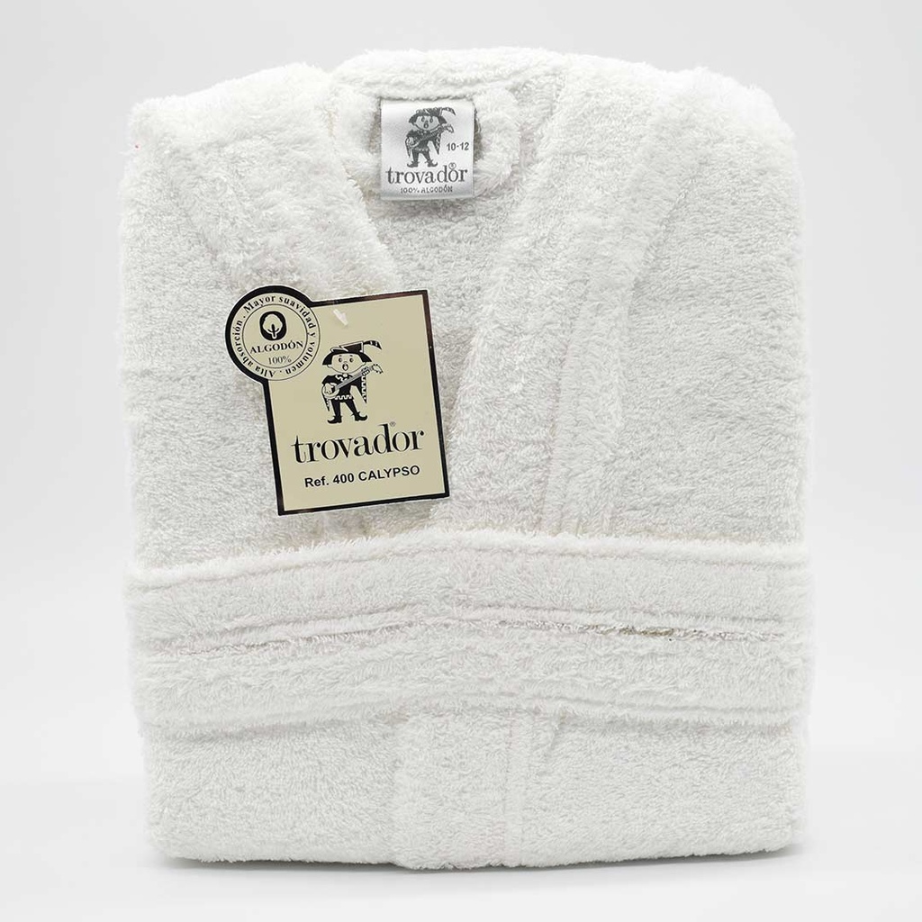 El albornoz tiene cuello smoking, capucha, dos bolsillos y cinturón para ajustar a la cintura. Está confeccionado en 100% algodón, con un tejido de 400gr/m2 muy suave y absorbente.