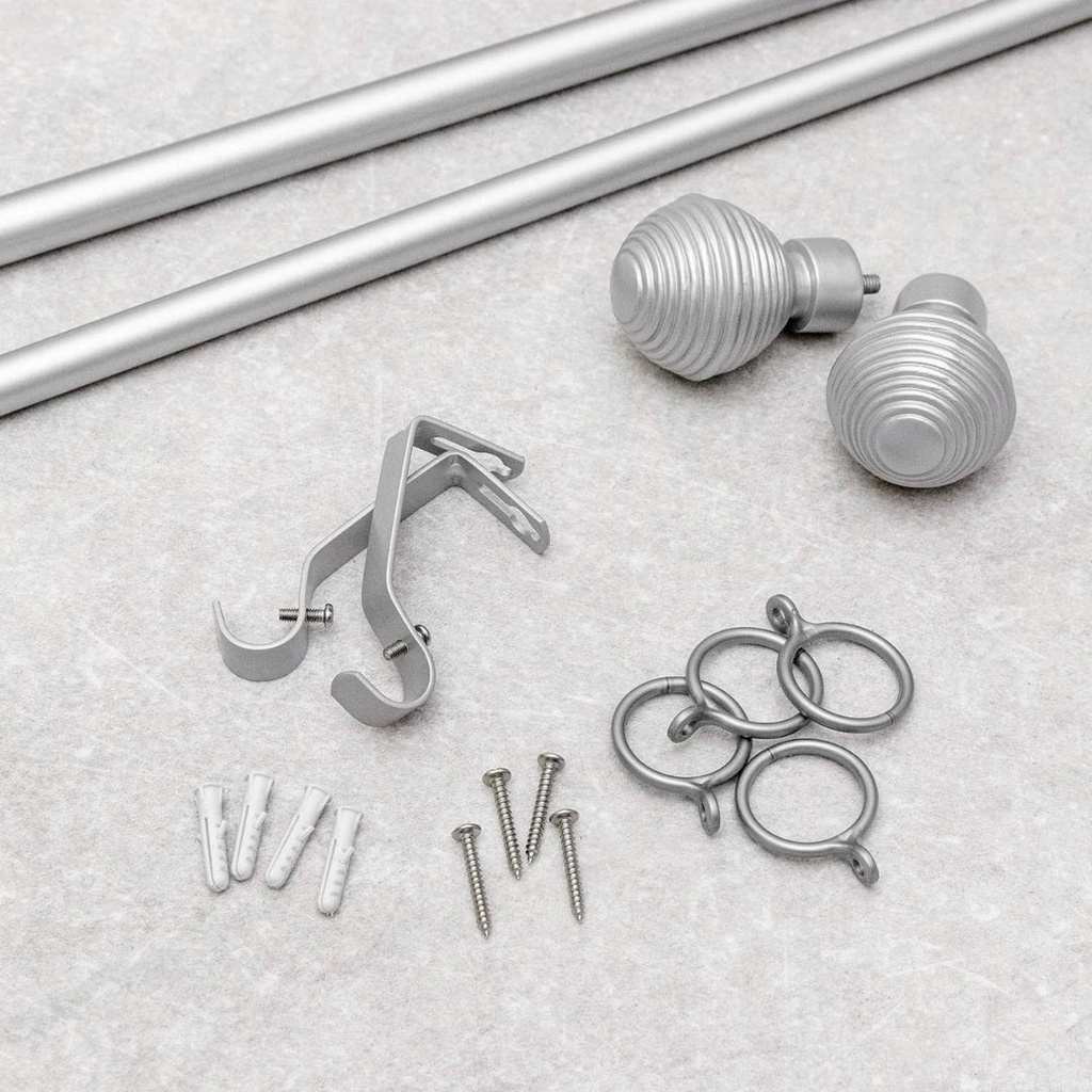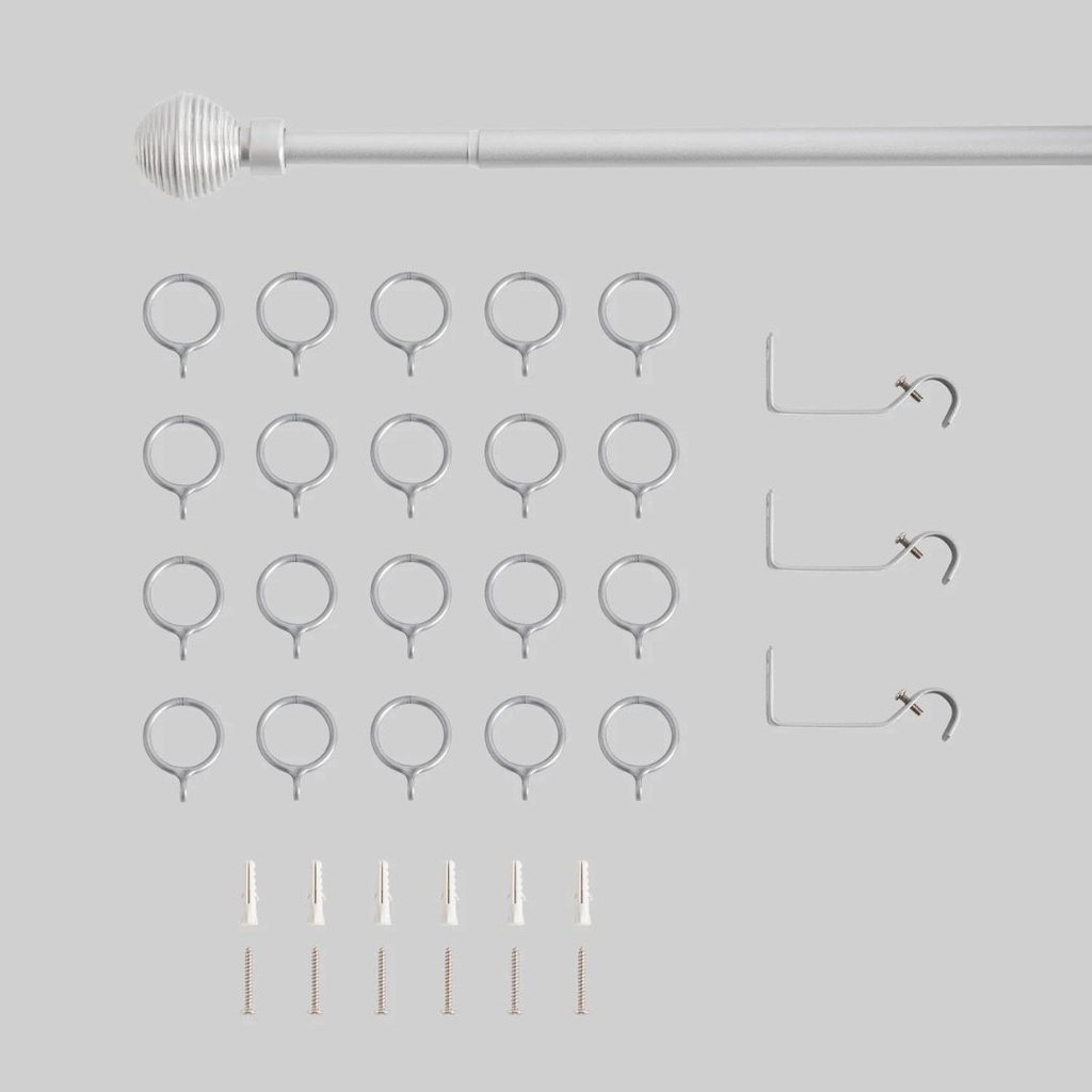 Barra de cortina extensible desde 120 a 210 cm. Es realmente versátil, ya que tiene posibilidad de ser instalada tanto en el techo (como barra de cortinas de techo) como en la pared. Incluye todos los soportes necesarios y ganchos para colgar, para adherirlas a la pared o al techo, así como anillas para colgar la cortina.