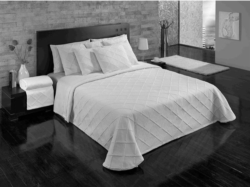 Colcha bouti de estilo clásico, ideal para decorar el dormitorio de forma elegante y atemporal. Su acolchado fino y tejido de piqué aportan un acabado ligero y decorativo, perfecto para los meses de entretiempo o para vestir la cama durante todo el año.