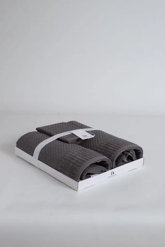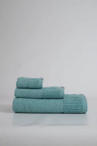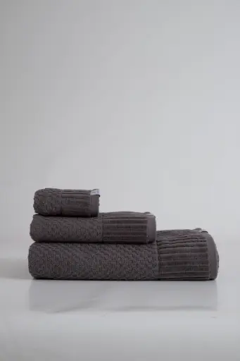 Juego de 3 toallas de algodón, diseñado para aportar elegancia y confort al baño. Destaca por su cenefa decorativa de hojas en jacquard, que añade un toque sofisticado al conjunto.