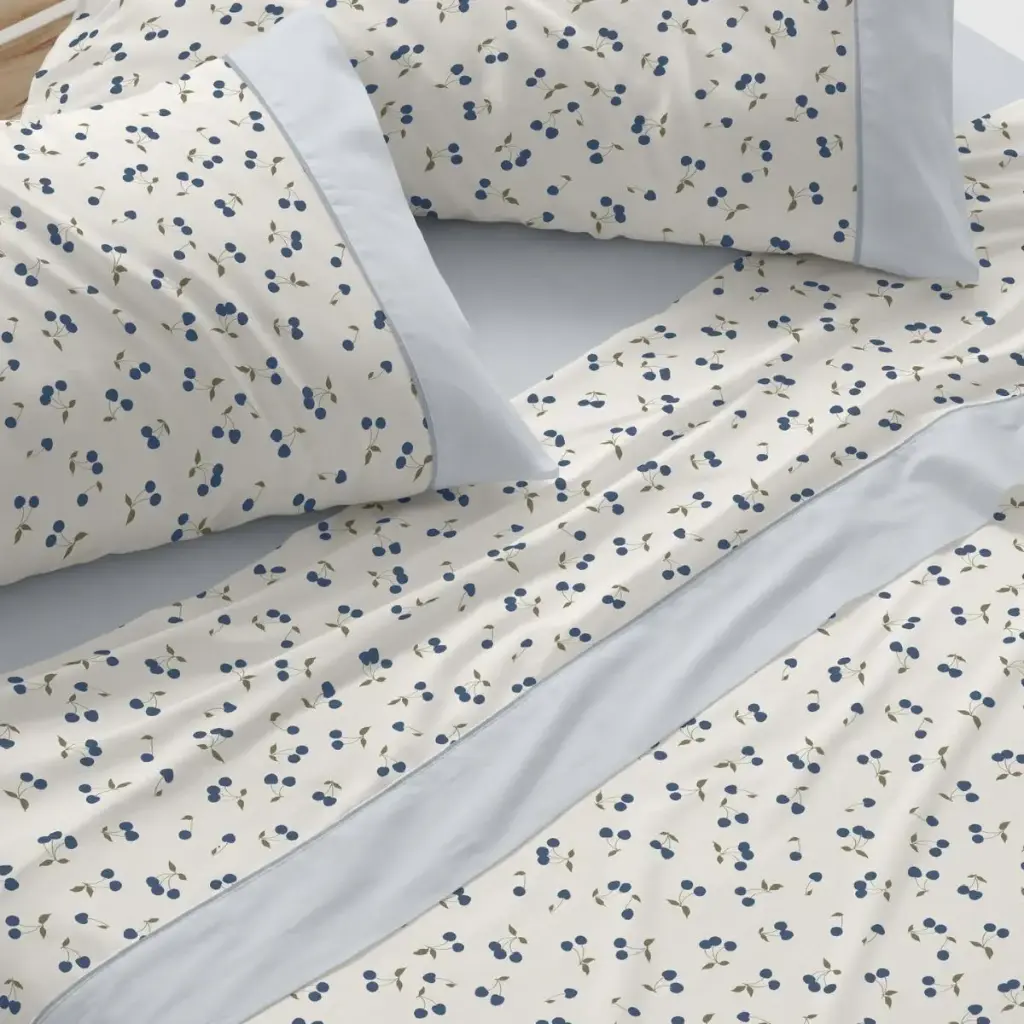 La bajera está confeccionada a juego con la funda de almohada, incorpora un vivo al tono junto a un estampado repetitivo. Son unas sábanas atrevidas y juveniles, ideales para dormitorios con un toque moderno.