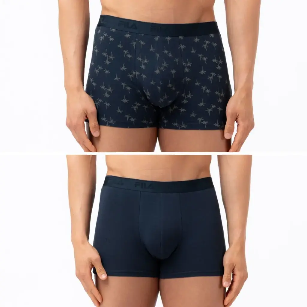 Pack de 2 Boxers Hombre Ajustados con Cintura Elástica Negro Con Estampados Verde y Azul Marino
