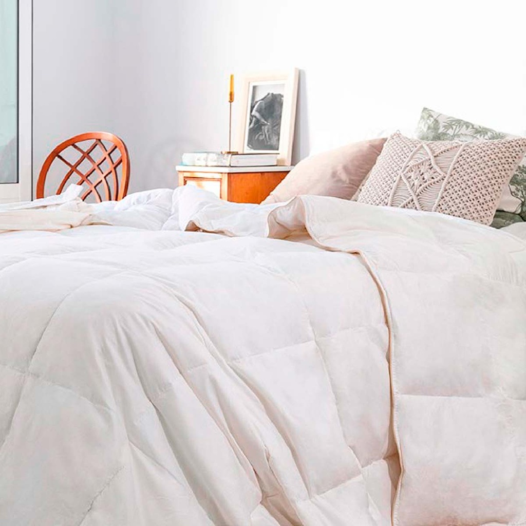 Nórdico acolchado y esponjoso ideal para utilizar en otoño o invierno. Calidad a precio competitivo es lo que ofrece este nórdico. Su relleno de alta calidad y su tejido con tratamientos especiales de suavidad y Down Proof te permitirán disfrutar de un suave y acogedor descanso. Su tejido es de color blanco y su confección a cuadros con vivo en beige. El gramaje de relleno es de 275 g/m2 y el gramaje incluyendo el tejido es de 525 gr/m2.