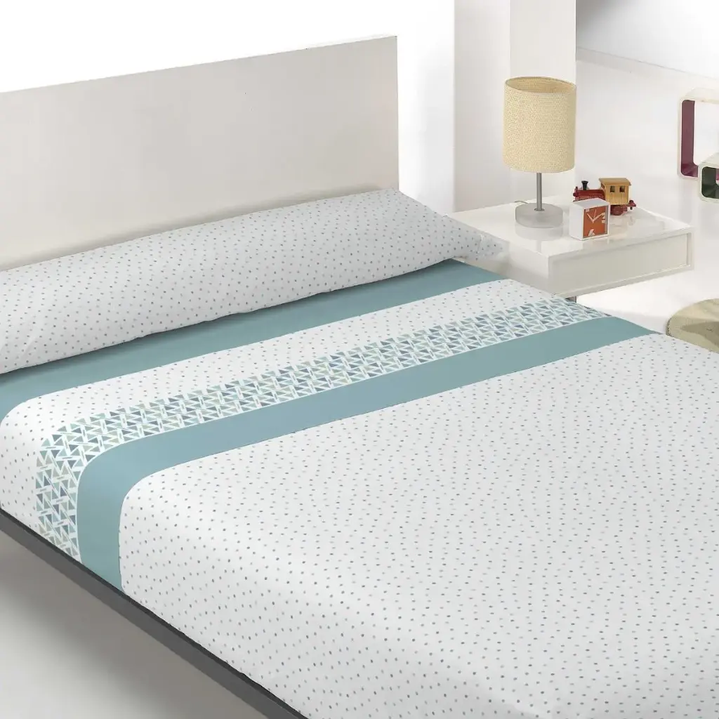 Juego de sábanas Rossana en microfibra 100% poliéster, suave, ligero y de fácil cuidado. Diseño en tono agua marina con detalles delicados y cenefa decorativa, ideal para un dormitorio fresco y moderno.